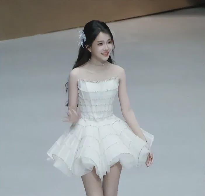 那双被镜头无限放大的粗腿,和抹胸公主裙营造的轻盈感形成了巨大的反差。
