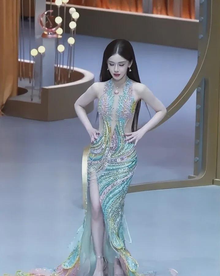 全场最敢穿的当属迅猛龙,她一身七彩挂脖透视长裙,确实穿出了人鱼公主的既视感。